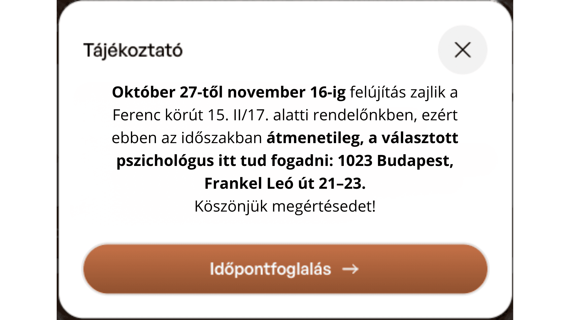 okt.22-én / okt.23-án minden Ferenc krt. 15. 2/17-be járó kliens fog kapni központi levelet az átmeneti időszakról
